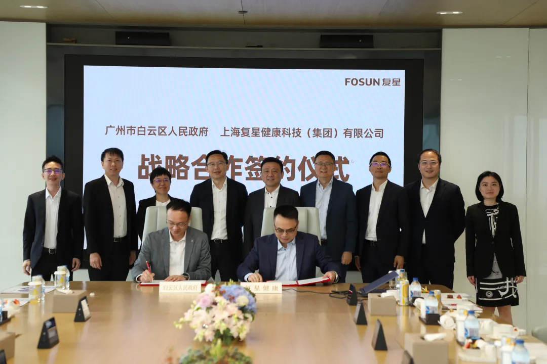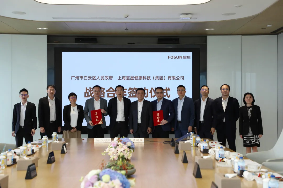 广州市白云区委书记洪谦、区卫生健康局党组书记、局长鲍涵慧、区投资促进局党组书记郑伟居等政府代表,与复星国际联席CEO陈启宇、复星医药董事长陈玉卿、复星健康董事长兼首席执行官胡航等企业代表共同出席并见证签约。