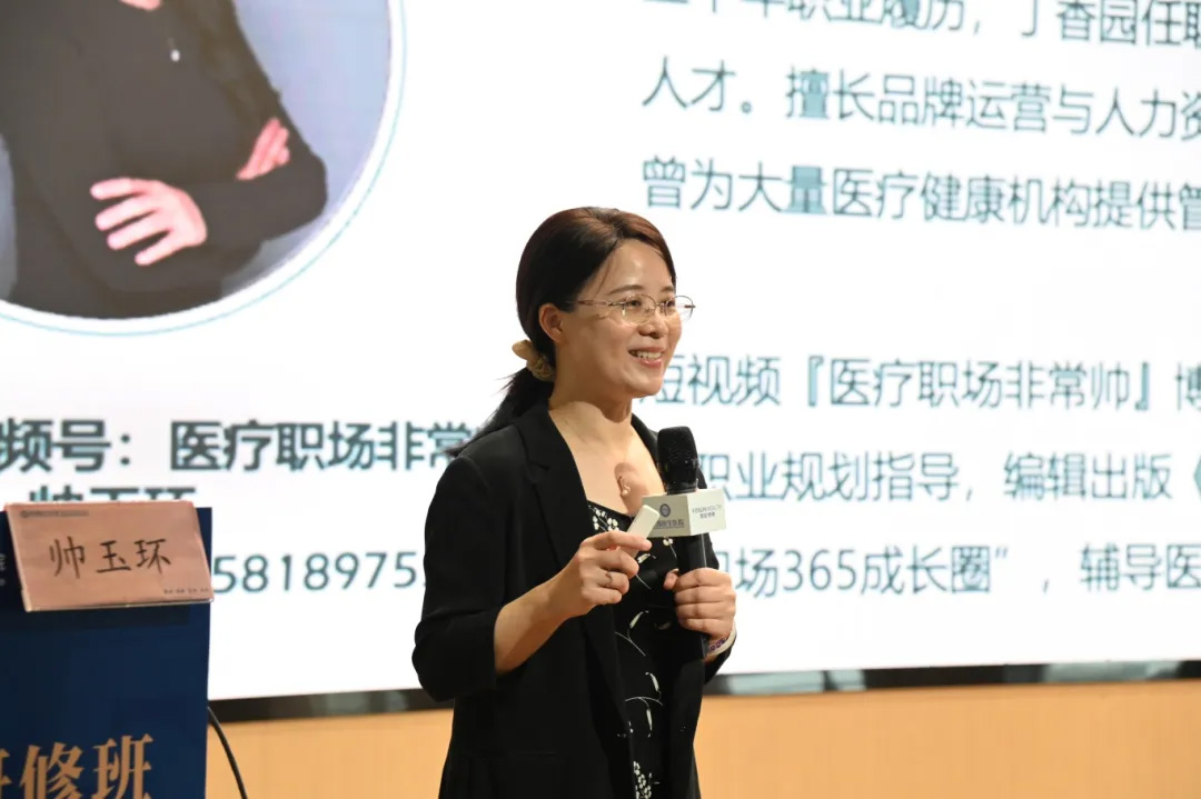 常青藤医疗创始人、丁香园前副总裁帅玉环则聚焦品牌建设方法,发表《科室品牌运营三套两拳法》主题授课。她指出,在日益激烈的竞争环境中,科室应通过差异化定位与持续内容创新,构建独特品牌价值,赢得患者与市场信赖。