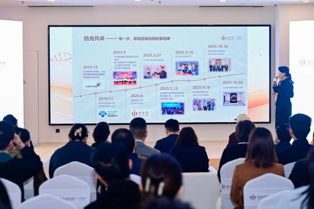 回溯 2025 年 10 月 29 日,北京卓尔荟诊所迁址启幕仪式在此圆满举行。复星国际联席 CEO 陈启宇,复星国际高级副总裁、复星医药董事长陈玉卿通过线上视频祝贺;复星健康董事长兼 CEO 胡航,复星健康联席总裁兼 CSO 沈赟,复星总裁高级助理石振毅,复星健康高级副总裁杨传华,复星健康高级副总裁王丽娜,复星健康副总裁、北京卓尔荟总经理郑玮及百合佳缘董事长王滔等多位复星生态领导,蒙发能源控股集团董事长高柱,迪安诊断华北区总经理兼北京迪安总经理刘学通,还有行业代表、商业保险合作伙伴、医疗专家们共同揭幕,见证战略落地重要时刻。